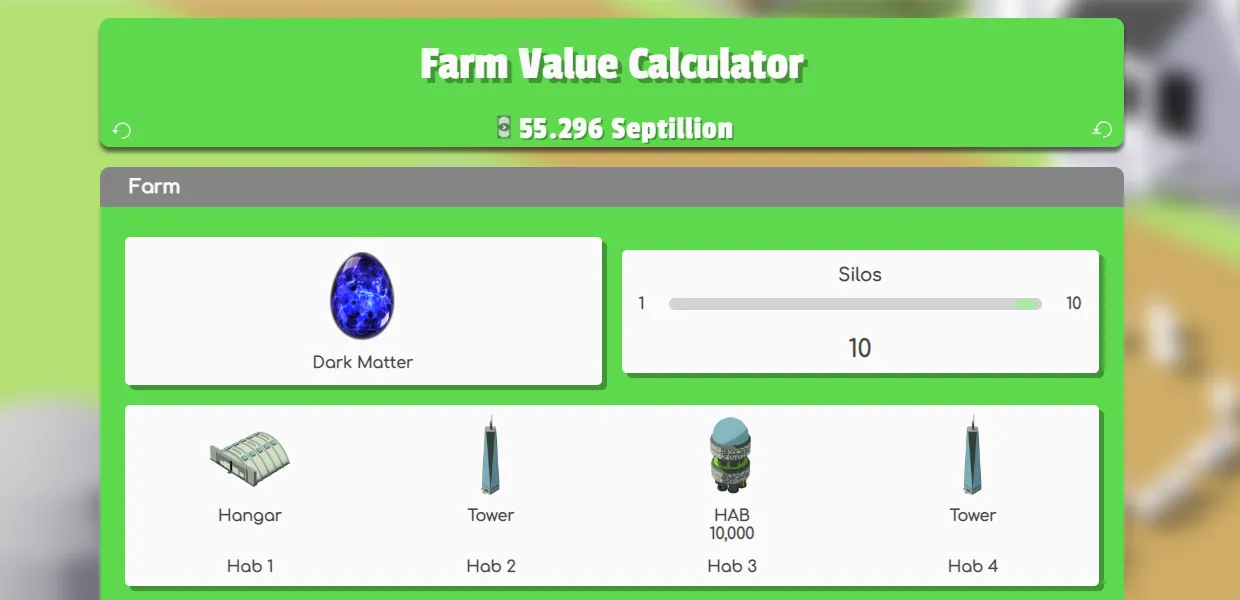 After making the contract calculator, I wanted to revisit the first version of the farm value calculator. The problem was that the original calculator required pure numeric inputs, some of which were hidden away in the game menus. For the new calculator I wanted to provide a more interactive user interface with images from the game so that users could recreate their farm on the page and have the calculator do the math for them. This meant that users could easily perform “what-if” scenarios to see how their farm would change if they made a certain upgrade or bought a new building.